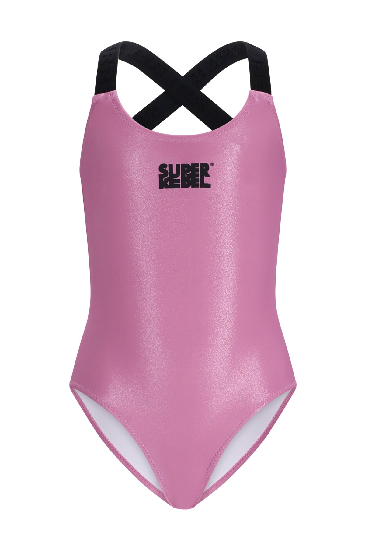 Let girls shine with the Venice Bathing Suit Metallic Pink by SuperRebel! This bold swimsuit is perfect for a summer outfit. The swimsuit is fully lined and features a crossback with branded elastic. Made from 85% recycled polyester, making it sustainable and ready for adventure. Ideal for beach and pool.